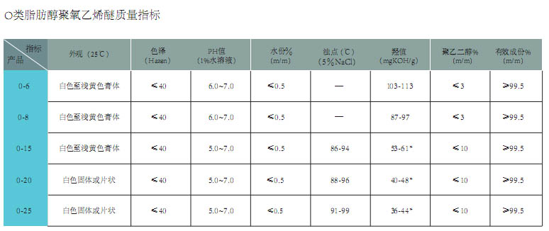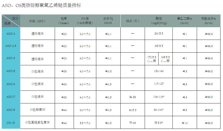 Properties and application: This series of products at room temperature is colorless transparent liquid or white waxy solid. Non - toxic, non - irritating, good emulsification, dispersion, water - solubility, decontamination. Washing industry as a non-ionic surfactant, emulsifying, foaming, decontamination, is the main active ingredients of hand sanitizer, laundry detergent, shower gel, washing powder, cleaning essence, metal cleaning agent. At the same time, it is also widely used in a variety of industrial purifying agent, emulsifier, printing and dyeing industry as dyeing agent, chemical fiber oil agent, textile, leather industry, pesticide, electroplating, paper making and cosmetics and other industries are extremely widely used.
